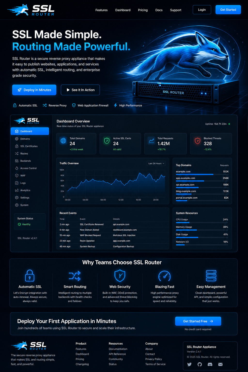 Run your entire infrastructure through a single public IP while securely routing traffic to production, development, AI systems, and internal services.